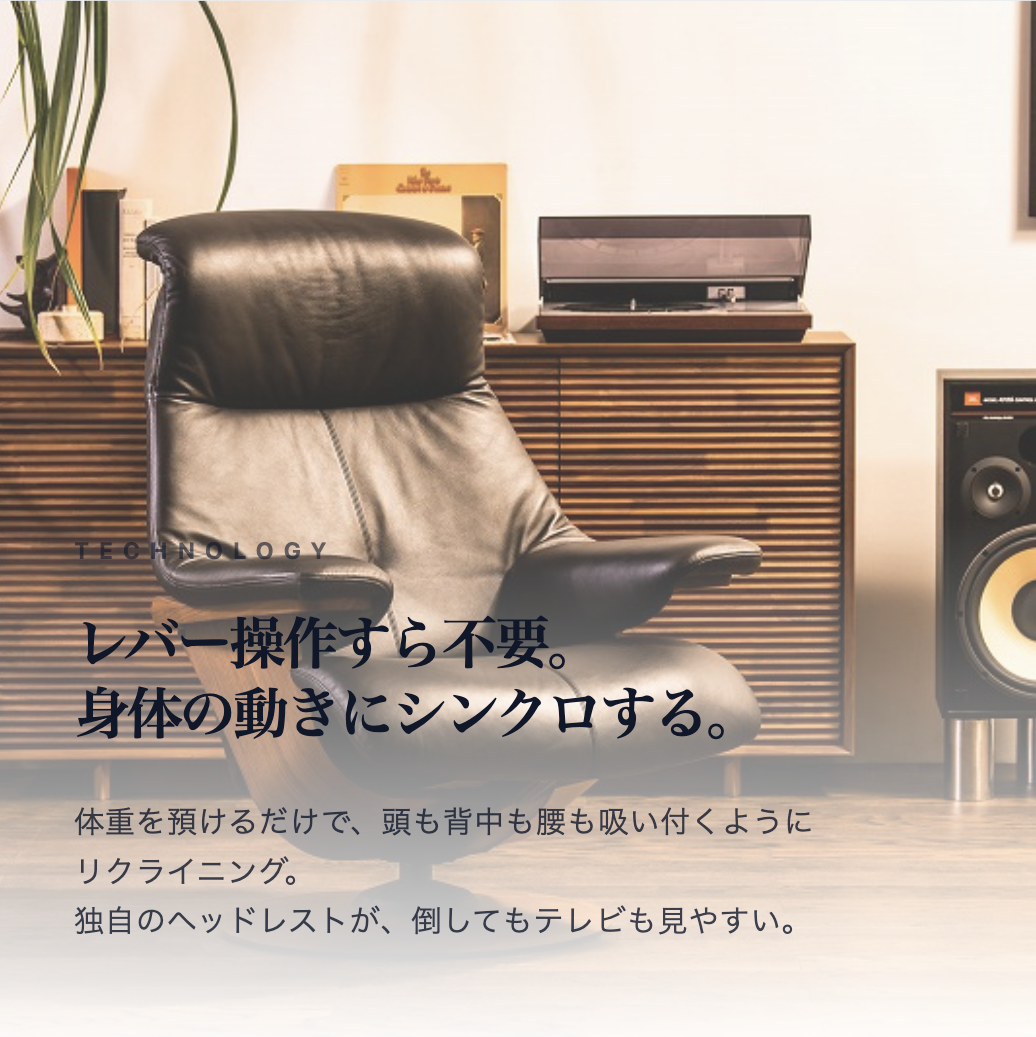体重を預けるだけで、滑らかにシンクロするリクライニング。